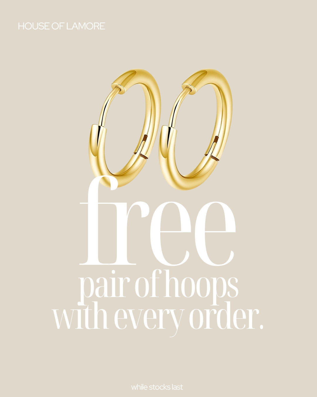 Receive a free pair of 18K Gold Plated Hoops with every order. Simply input that you would like to get them at checkout!